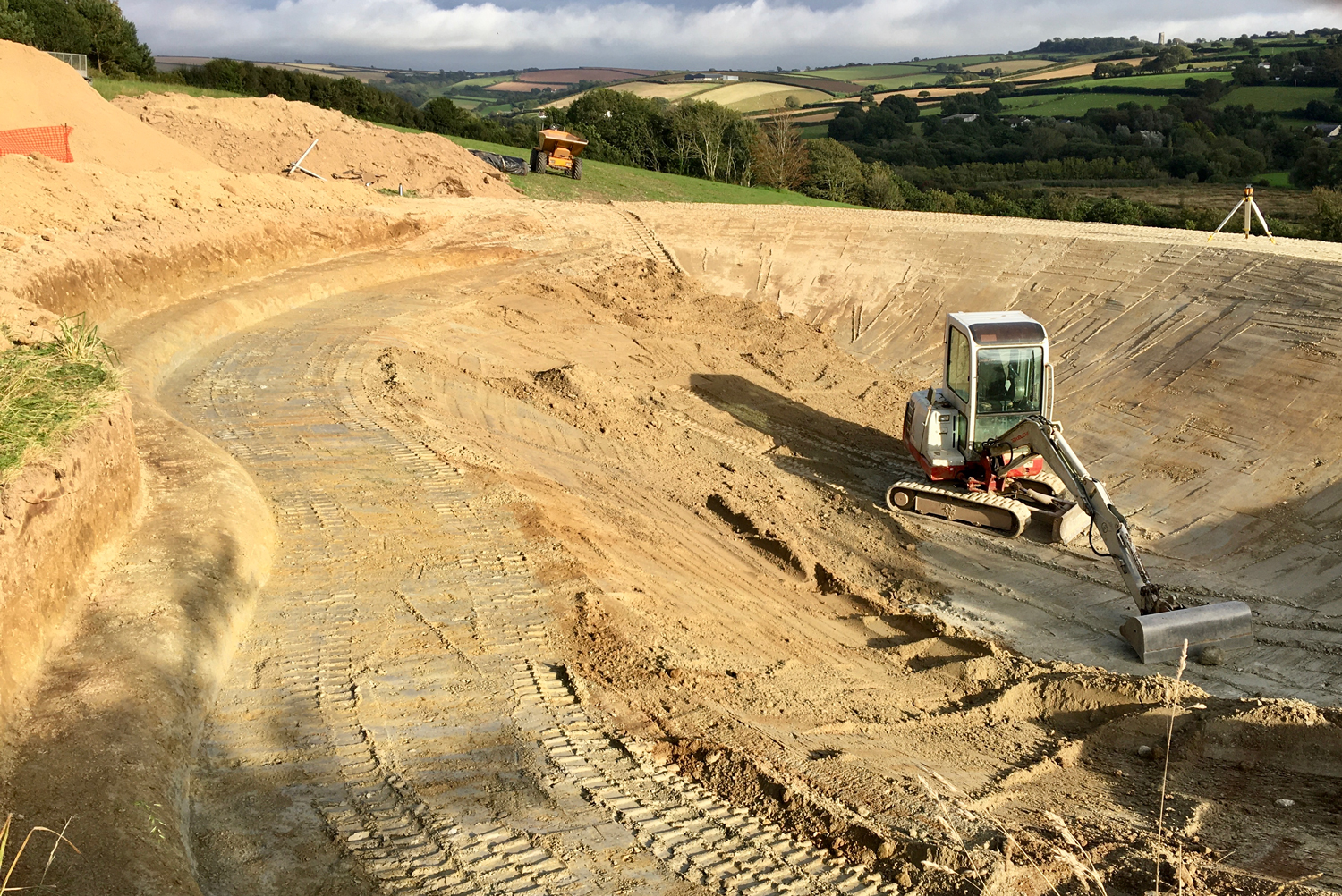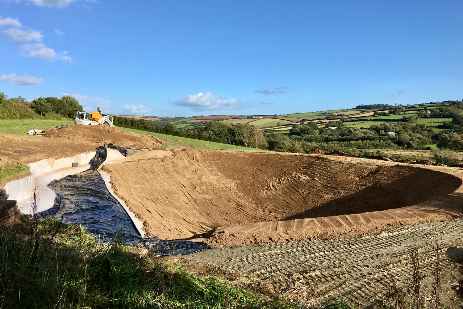 The pond site is first prepared by excavating and removing all recoverable topsoil, storing for reuse in the latter stages of the ponds construction.